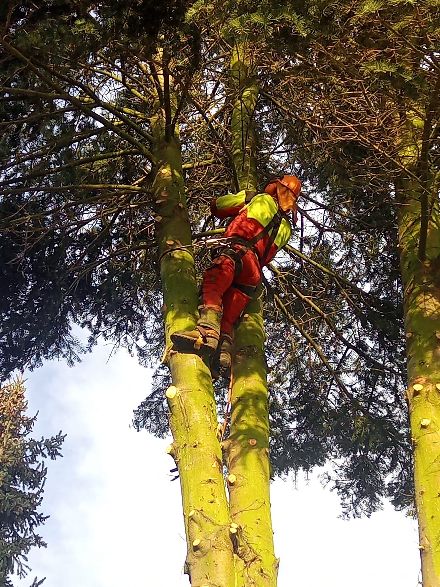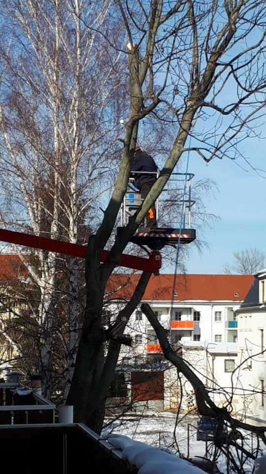 Sicherheit steht beim Baumdienst Pirna an oberster Stelle, daher arbeiten wir nur abgesichert mit Seiltechnik sowie – wenn nötig – mit Hebebühnen.